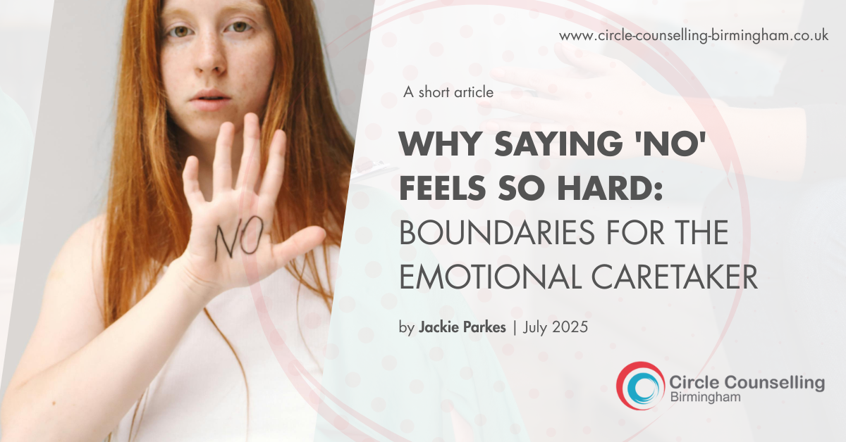 Therapy in Birmingham can offer a supportive, non-judgemental space to explore where these habits came from, how they are affecting you now, and how to begin practising boundaries that protect your energy without disconnecting you from the people you care about. This post unpacks why saying no can be so difficult, especially for emotional caretakers, and offers a compassionate approach to boundary-setting that puts you back in relationship with your own needs.